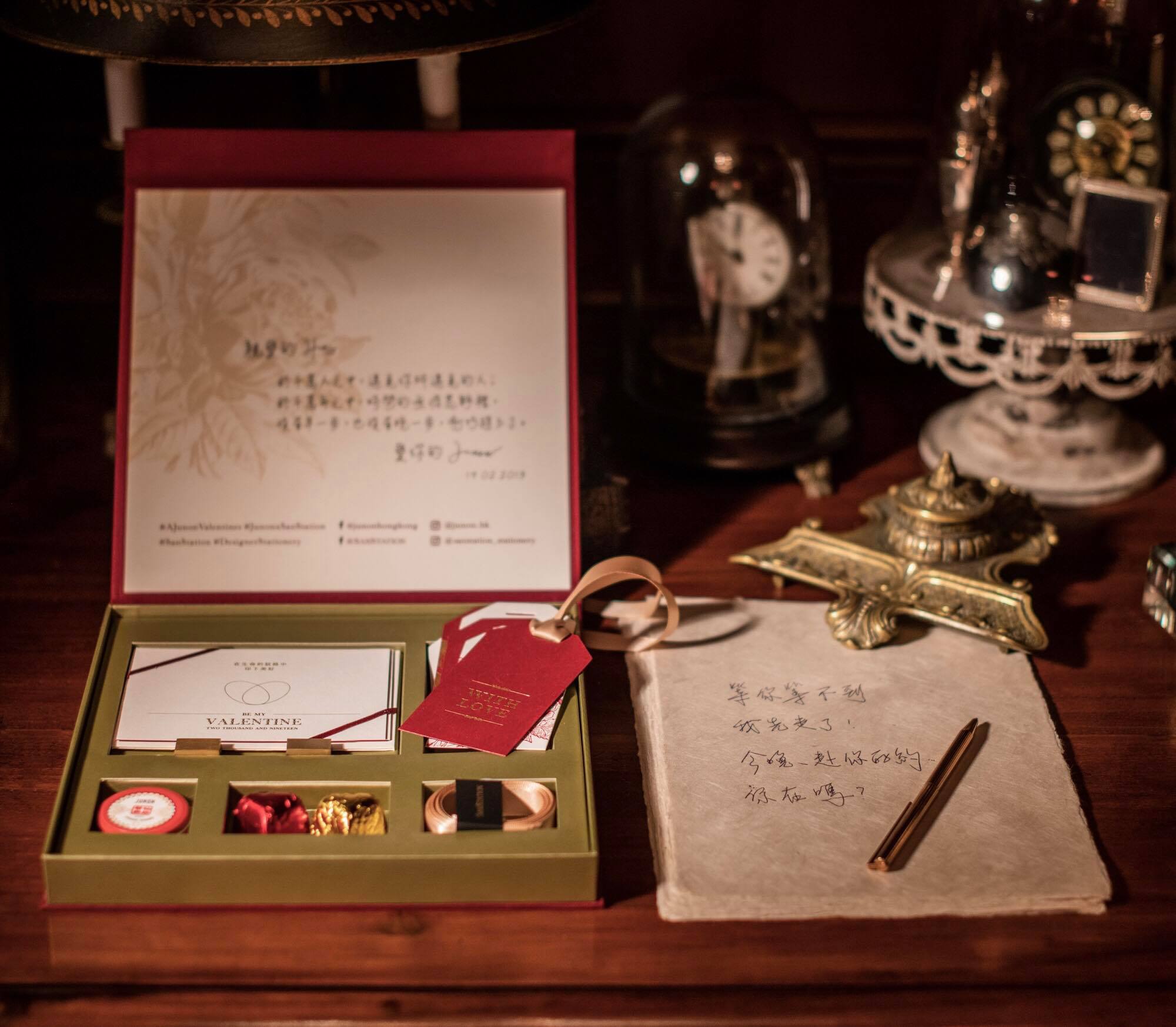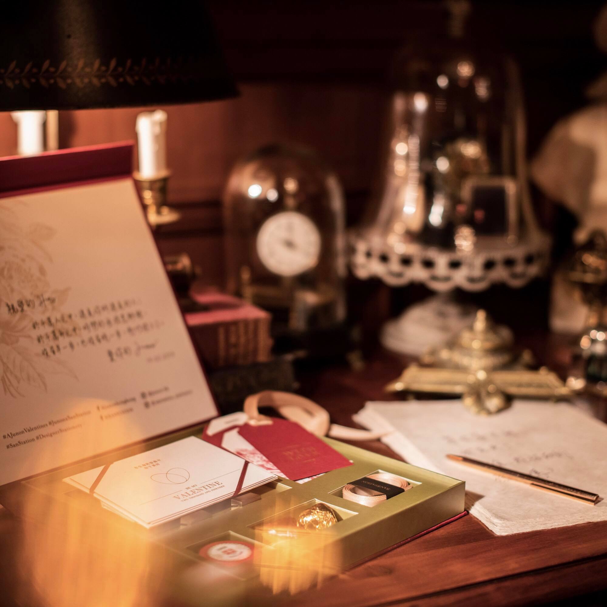2月14日。等到今日,彷如一世。 今夜,在JUNON仙后餐廳裡,為各位有情人送上創造獨有浪漫驚喜的【JUNON x SanStation情人節禮盒】限量版!盒子裡的濃情蜜意朱古力、心型指紋情人卡、愛情名句書籤、金色絲帶及名片座。這個情人佳節,為記憶留下最美好的印記。