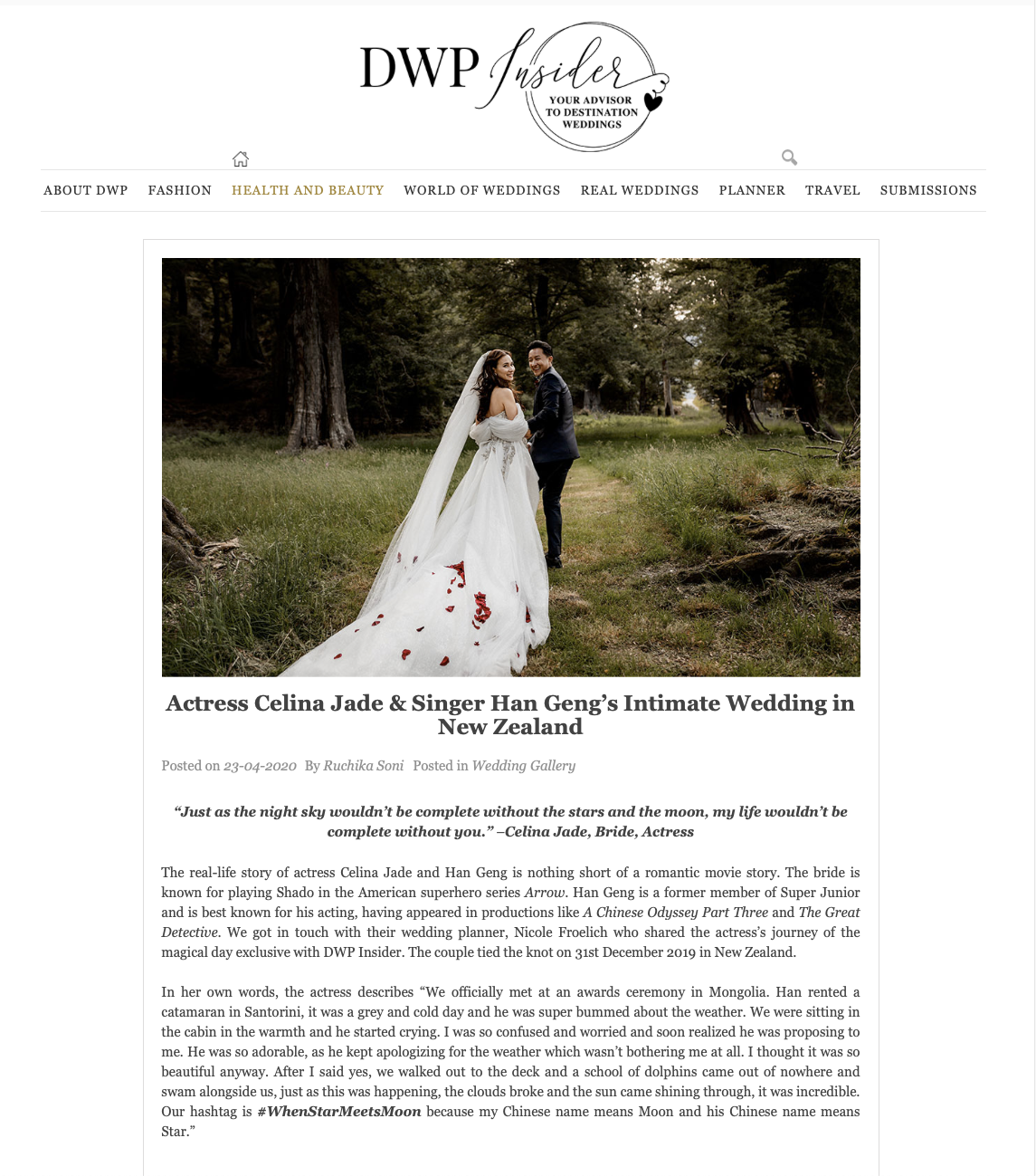 Read all about Actress Celina Jade & Singer Han Geng’s Romantic Elopement in New Zealand, shared by Wedding Planner Nicole Froelich, exclusive on DWP Insider!